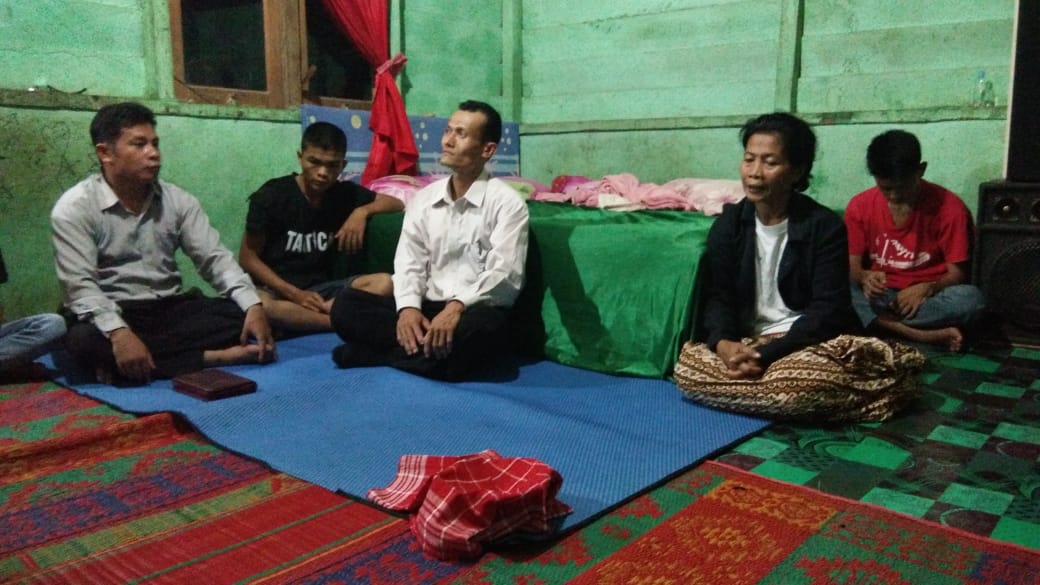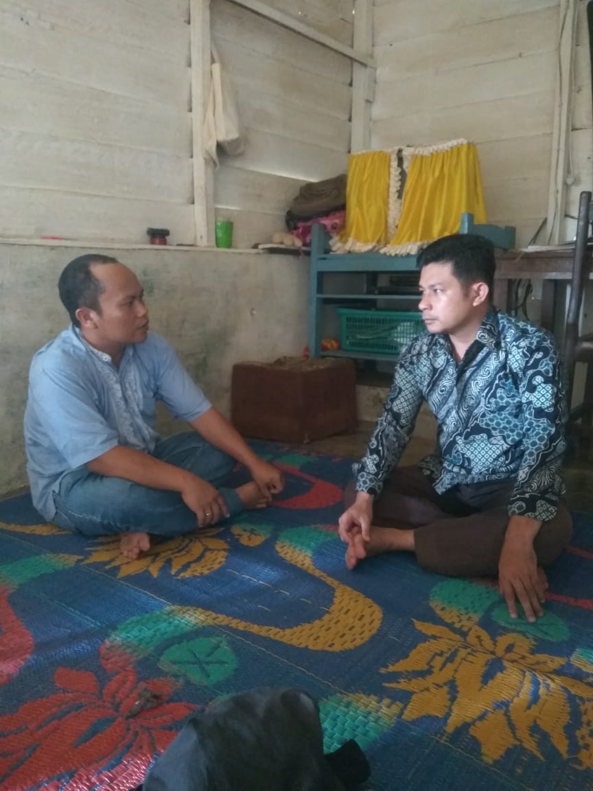 The priest, Selianus Zega (left), campaigning message for local community to prevent illegal capture of Orangutan (2020.01.19).