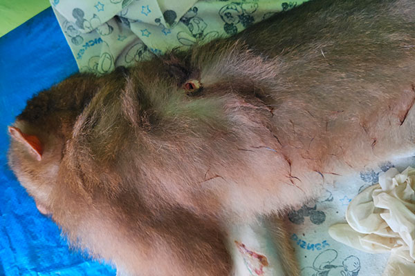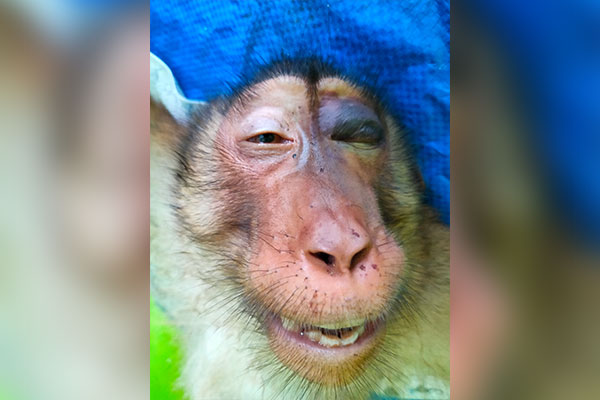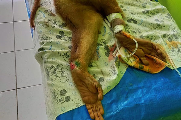 A pig-tailed macaque (Macaca nemestrina) was reported by local people in Perdagangan, Simalungun Regency, Sumatra to wildlife authority (BBKSDA SU). On Sunday night (06/12), the macaque (weak and injured all over his body) was entrusted to the SCORPION Foundation to continue the rescue effort. But unfortunately, on Tuesday afternoon (08/12), this macaque died during medical treatment. This poor macaque is also suspected of being traumatized as a result of torture.