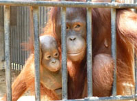 The 14 orangutans stolen from Indonesia were confiscated in Thailand in 2009 consisted of eight males, four females, and two babies had since been born. Mating took place through bars of the cages.