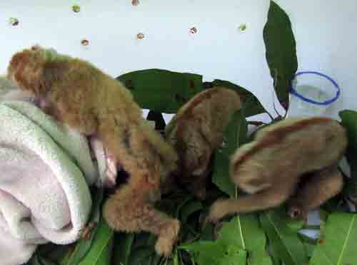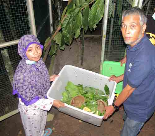 The Wildlife Authority (BBKSDA) in North Sumatra confiscated 6 protected animals in Timbang Jaya village, Bahorok, Friday night (6/1/2017) from the owner, Mrs. Ima. The slow lorises were found in poor health condition suffering from malnutrition. These animals are kept in animal rescue centre in Medan for rehabilitation before their releases in the wild.