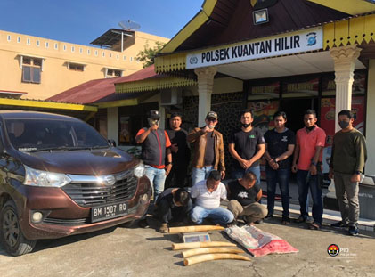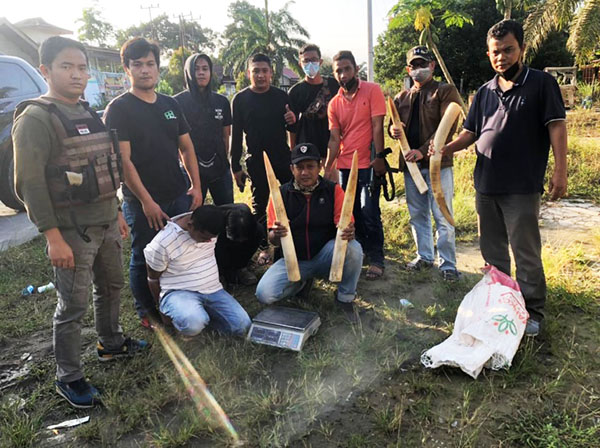 arrested 3 elephant traffickers in Kuantan Singingi Regency, Riau Province in