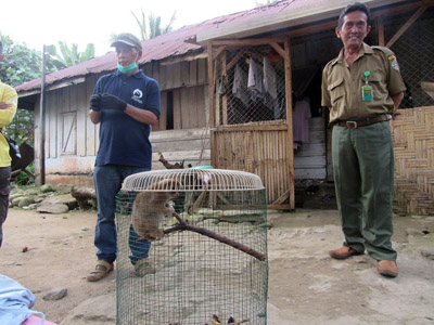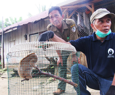 Three slow lorises were confiscated in Langkat Regency, North Sumatra province. Two of them were confiscated from Mr. Painem in Bukit Lawang village, while another one was confiscated from Mrs. Nurhaijal in Timbang Lawang vilage.