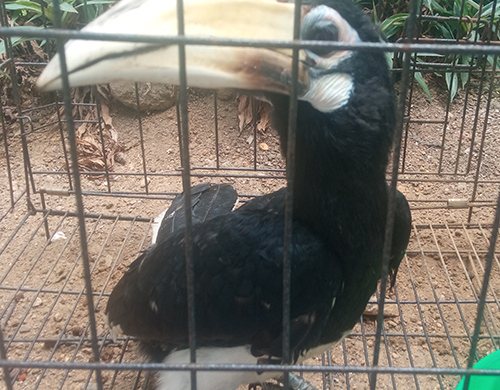 (a gibbon Hylobates Agilis and an Oriental pied hornbill Anthracoceros