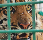 Elsa, an adult female Sumatran tiger, has spent more than 1 year in a narrow metal cage measuring 1.5 x 2 meters. This horrible cage has injured her shoulder and leg.